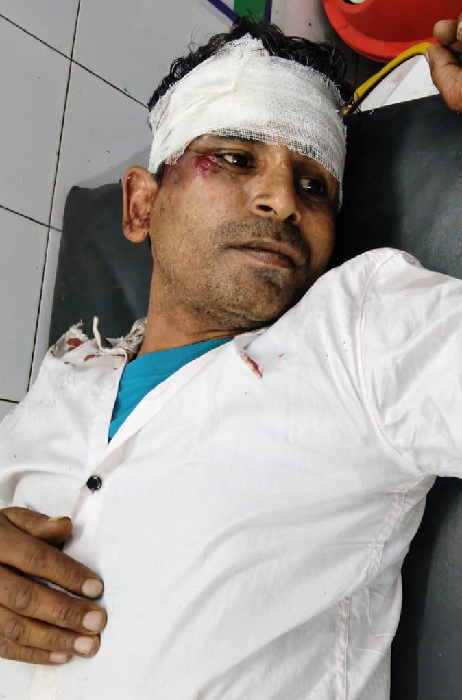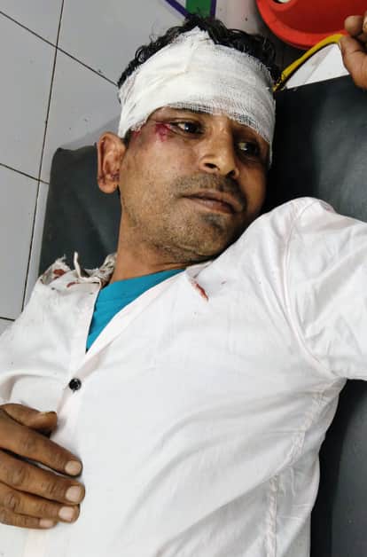घायल बाइक पर सवार हरबीर निवासी रामराज। (मवाना)