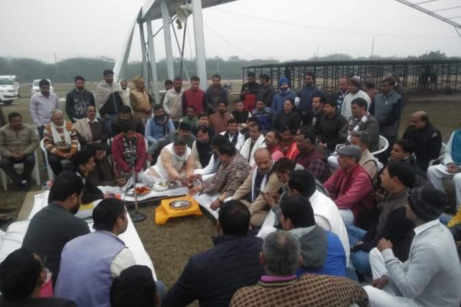 मेरठ में राजनाथ सिंह की रैली से पहले भाजपा नेताओं ने किया भूमि पूजन, दिग्गजों ने साधा जनसंपर्क