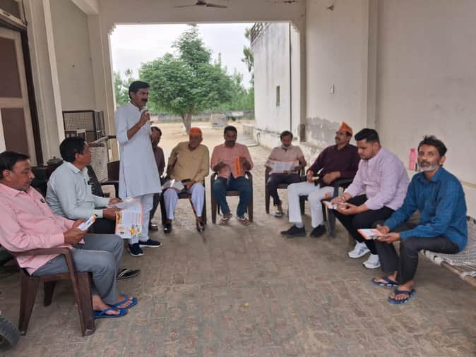भाजपा के गांव चलो अभियान के तहत कार्यक्रम में विचार रखते सुनील पोसवाल। (स्त्रोत कार्यकर्ता) मवा