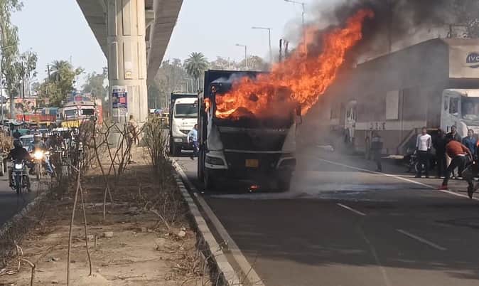 Meerut News: डंपर में लगी आग, चालक बाल-बाल बचा