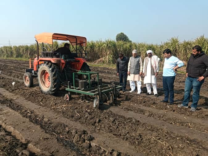 गन्ना पेड़ी जो कुल गन्ने रकबे का लगभग आधा हिस्सा होती है। इसकी पैदावार को सही देखभाल से बढ़ाया जा सकता है। अभी पौधा गन्ना कटना शुरू हुआ है तो इसी समय खेतों में कुछ क्रियाओं की जरूरत है जो आगामी पेड़ी फसल को अच्छी शुरूआत देगी। जमालपुर व गड़ीना गांव में पहुंचकर उन्होंने किसानों के खेतों पर ट्रेंच विधि से गन्ने की बुवाई के बारे में किसानों को जानकारी दी।