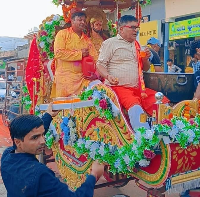 माछरा। नंगली अब्दुल्ला माछरा में हनुमान जी की शोभायात्रा निकलने पर श्रद्धालुओं द्वारा स्वागत क