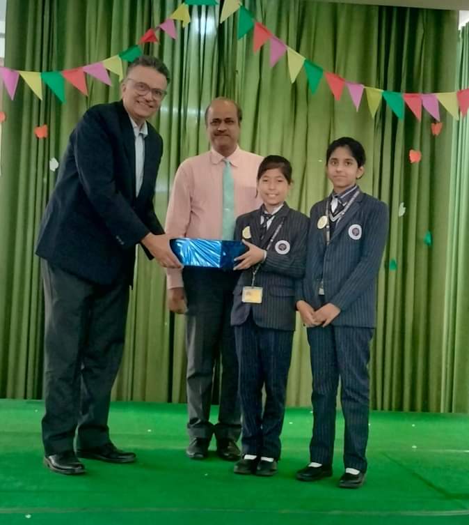 दिल्ली ग्लोबल स्कूल में वक्तृत्व कार्यशाला में प्रतिभाग करने वाले छात्रों को सम्मानित करते हुए।