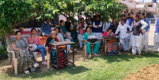 लक्ष्मी देवी आर्य कन्या डिग्री कालेज में मैच देखते हुए। (स्त्रोत कालेज) मवाना।