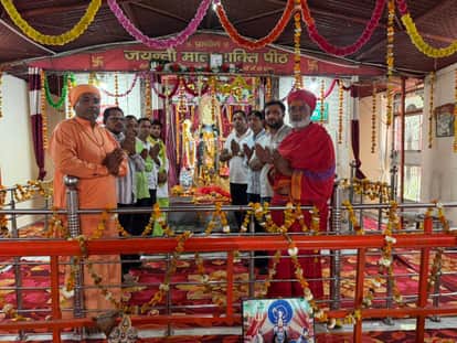 प्राचीन जयंती माता शक्तिपीठ मंदिर में पूजा अर्चना करते श्रद्धालु स्रोत संवाद