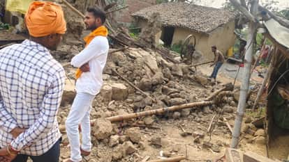 मड़िहान थाना क्षेत्र के रामपुर 33 गांव में गिरे दीवार का मलबा। स्रोत -सोशल मीडिया