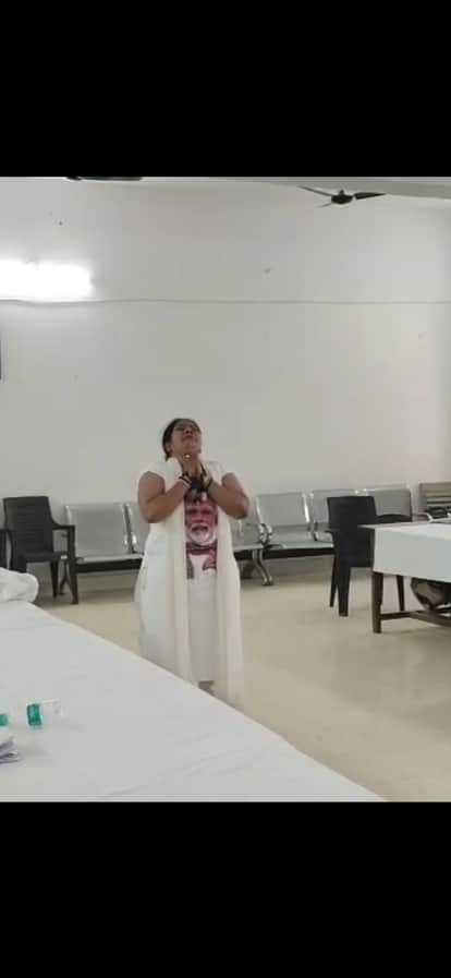 मड़िहान तहसील में मोदी की तस्वीर वाले कपड़े पहने महिला