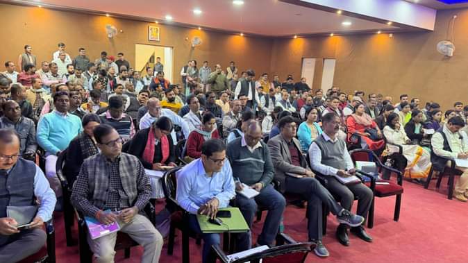विकास भवन के सभागार में यूडायस की कार्यशाला में उपस्थित अधिकारी व शिक्षक, स्रोत सोशल मीडिया