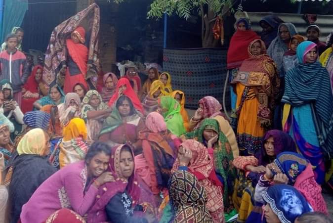 चील्ह के अनिरुद्धपुर पुरबपट्टी गांव के पास हादसे में मृत लखंदर के परिजन। स्रोत- संवाद