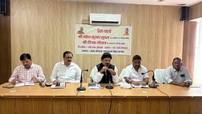 अष्टभुजा निरीक्षण गर्भ में पत्रकारों से वार्ता करते उत्तर प्रदेश राज्य गो सेवा आयोग के उपाध्यक्