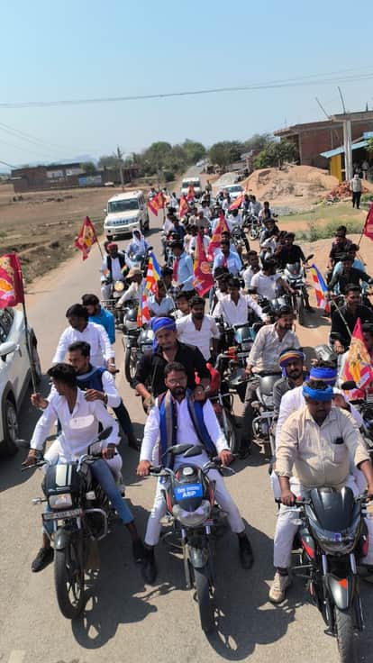 सम्राट अशोक जयंती पर हलिया में बाइक जुलूस निकालते लोग।-सोशल मीडिया।