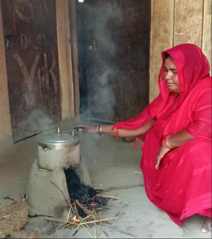 लालगंज में सामुदायिक स्वास्थ्य केंद्र में चूल्हे पर भोजन बनाती आशा कार्यकत्री ऊषा देवी, स्रोत