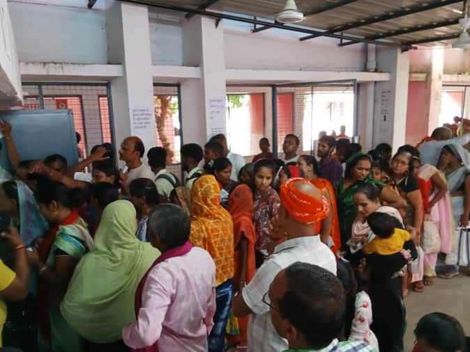 मंडलीय अस्पताल के जांच केंद्र पर लगी भीड़ स्रोत -संवाद