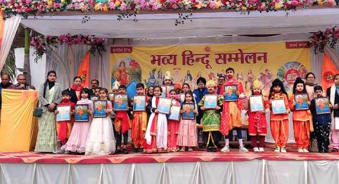 नगर के अनगढ़ रोड स्थित एक लॉन में सकल हिंदू समाज अनगढ़ बस्ती की ओर से सम्मेलन हुआ। हिंदू समाज के नन्हे मुन्नों ने नाट्य मंचन व हनुमान चालीसा का पाठ किया। मुख्य वक्ता युद्धवीर, रामसुंदर दास बाबा, अध्यक्ष भूपेंद्र सिंह डंग, चंद्रलेखा, प्रेम कुमार सोनकर, श्याम आदि ने भगवान राम व भारत मां के चित्र के समक्ष दीप प्रज्वलन कर कार्यक्रम शुरू किया।
