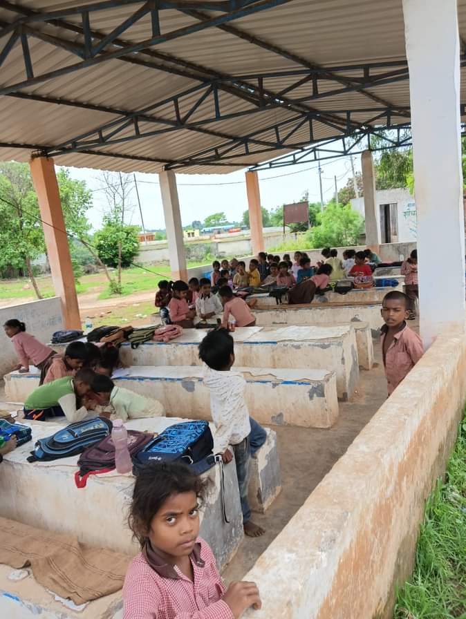 प्राथमिक विद्यालय देवरी कला भवन के अभाव में भोजनालय में पढ़ने को विवश, स्रोत संवाद