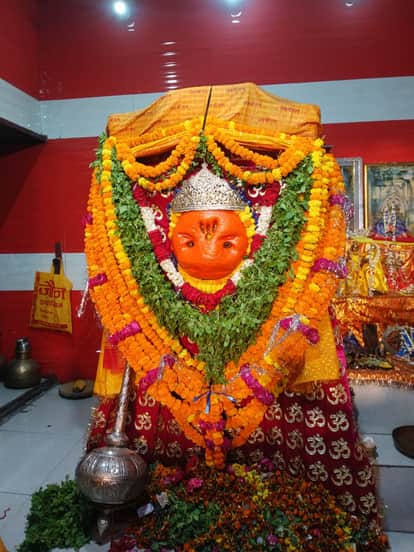 नगर के संकट मोटन मंदिर पर बजरंग बली का भव्य श्रृंगार फोटो संवाद