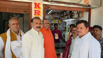 गैपुरा चौराहा बाज़ार में जन संवाद करते नगर भाजपा विधायक रत्नाकर मिश्रा।-सोशल मीडिया।