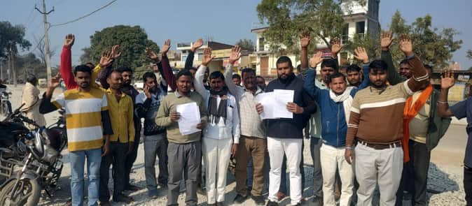 Mirzapur News: सड़क के दोनों तरफ बिजली खंभा न लगने पर ग्रामीणों ने किया प्रदर्शन