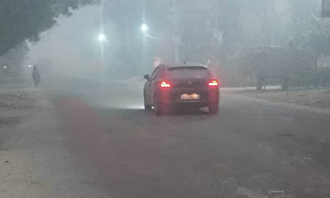 भोपा में कोहरे के दौरानन मार्ग से गुजरते वाहन। संवाद
