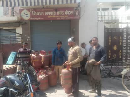 प्रेमपुरी में गैस एजेंसी पर किया जा रहा एलजी सिलिंडर का वितरण। संवाद