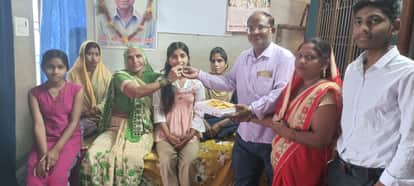 जिला टॉपर दर्शिका का मुंह मीटा कराते परिजन संवाद