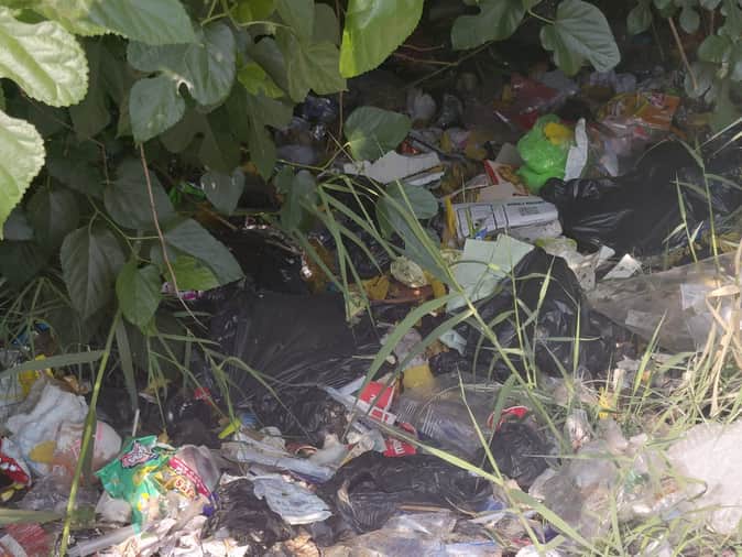 गांधी स्टेडियम मार्ग पर एक हॉस्पिटल के काली पन्नियों में मेडिकल वेस्ट के ढेर। संवाद