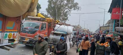 Pilibhit News: फुटपाथ पर अतिक्रमण से अस्पताल तिराहे पर लगा जाम