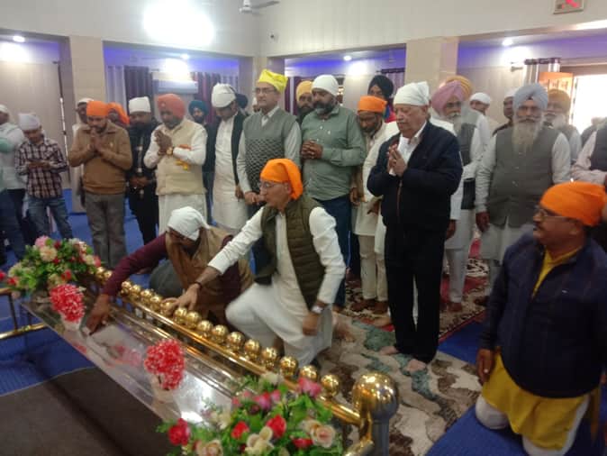पूरनपुर के गुरुद्वारा श्री सिंह सभा में मत्था टेकते केंद्रीय मंत्री जितिन प्रसाद व विधायक बाबूर