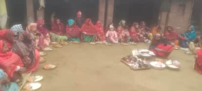 पूरनपुर क्षेत्र के गांव अमरैया कलां में सकट चतुर्थी पर पूजा करती महिलाएं- ग्रामीण