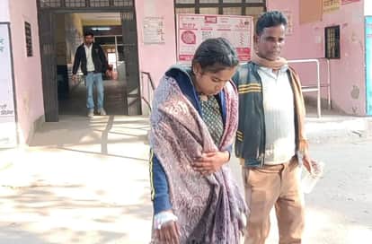 सामुदायिक स्वास्थ्य केंद्र में उपचार के बाद परीक्षा देने जाती घायल छात्रा। संवाद