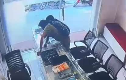 सराफ की दुकान के शोकेस से चोरी करता युवक। स्रोत वीडियो ग्रेब