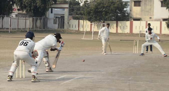 स्टेडियम में आयोजित क्रिकेट प्रतियोगिता में प्रतिभाग करते खिलाड़ी। संवाद