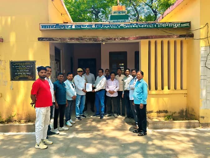 सांगीपुर मे ज्ञापन देते रोजगार सेवक
