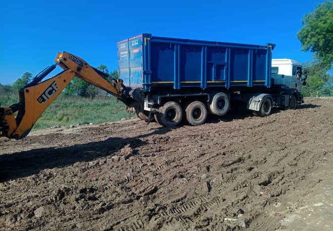 मुंशीगंज-डलमऊ राजमार्ग पर बेंद गांव के पास बने बाईपास मार्ग पर कीचड़ में फंसे वाहन को निकालती ज