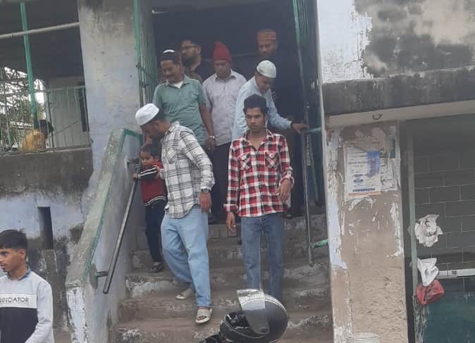 रमजान में कहारों का अड्डा स्थित मस्जिद में नमाज पढ़कर बाहर निकलते रोजेदार।