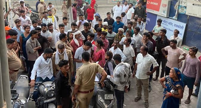 मिल एरिया थाना क्षेत्र के एक प्राइवेट अस्पताल में महिला की मौत को लेकर हंगामा करते लोग।