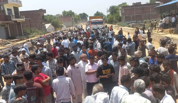 सलोन कोतवाली क्षेत्र के परशदेपुर मार्ग पर हादसे में बाइक सवार की मौत के बाद जाम लगाएं ग्रामीण।