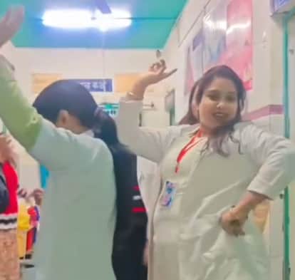 शिवगढ़ सीएचसी में डांस करती स्वास्थ्य कर्मचारियों की वायरल वीडियो से लीगई फोटो।