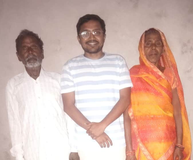 खींरो ब्लॉक के चांदेमऊ गांव में परिवार के साथ विमल कुमार।