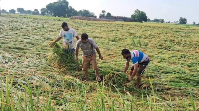 बदलते मौसम से सबसे बड़ी आफत किसानों पर आई। धान की फसल भीग गई है और कटाई व मड़ाई का काम ठप हो गया है। जिन खेतों में फसल खड़ी थी वह हवा तेज चलने और बारिश के कारण गिर गई। किसान फसल के नुकसान से चिंतित हैैं। जिले में 1.80 लाख हेक्टेयर में धान की फसल खड़ी है। इस समय 50 फीसदी फसल की कटाई हो सकी है। 50 फीसदी फसल बारिश और हवा की मार से खेतों में पड़ी है।