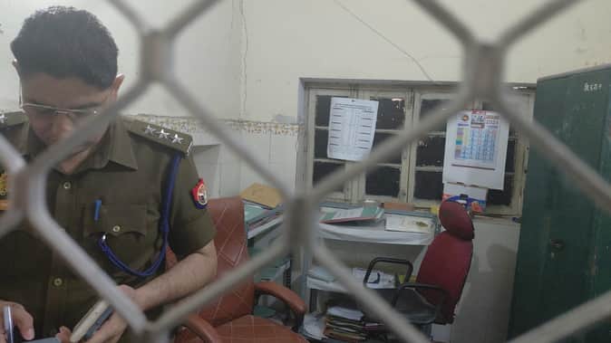 जिला पंचायत में घटना स्थल पर जांच करते सीओ सिटी। संवाद