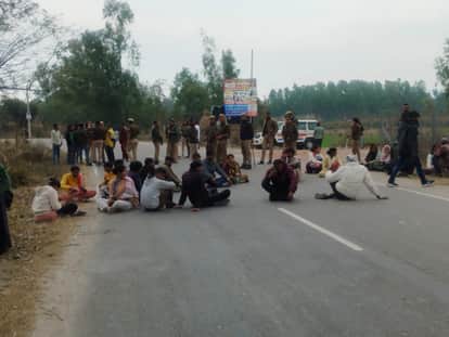 शाकंभरी देवी-सुंदरपुर मार्ग पर सड़क पर बैठ कर जाम लगाते मृतक छात्र के परिजन। श्रोत ग्रामीण