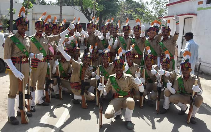 पुलिसकर्मी बनने की खुशी : पुलिस लाइन में आयोजित दीक्षांत परेड के बाद जश्न मनाते आरक्षी।