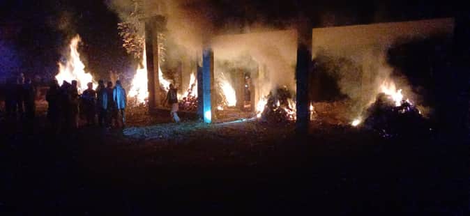 गांव खारीबांस के श्मशान घाट में जलती अशोक के परिवार की चिताएं। श्रोत ग्रामीण