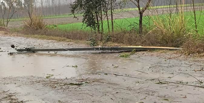 पठेड क्षेत्र में तेज हवा के कारण गिरे बिजली के खंभे।स्रोत-ग्रामीण