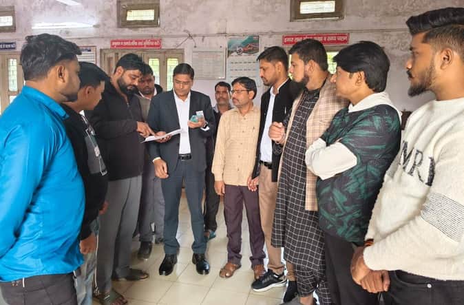 चंदौसी में कार्यवाहक स्टेशन अधीक्षक को ज्ञापन सौंपते अखिल भारतीय युवा उद्योग व्यापार मंडल के प