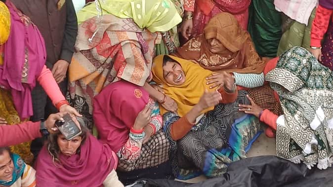 बहजोई के गांव कमालपुर में विलाप करते मृतकों के परिजन व रिश्तेदार। संवाद