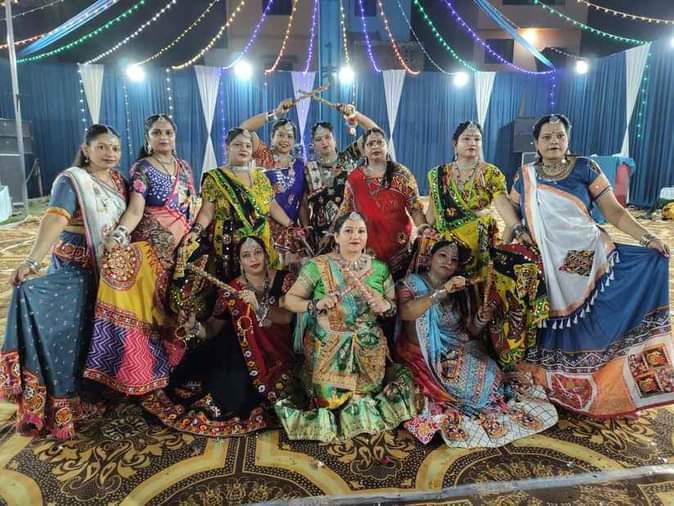 सरायतरीन में डांडिया कार्यक्रम में प्रतिभाग करती महिलाएं संवाद