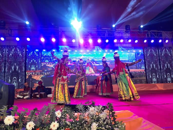महोत्सव मंच पर निर्गुण त्रिधारा भक्ति उत्सव के तहत कार्यक्रम प्रस्तुत करती कलाकार-संवाद- फोटो : rajori news