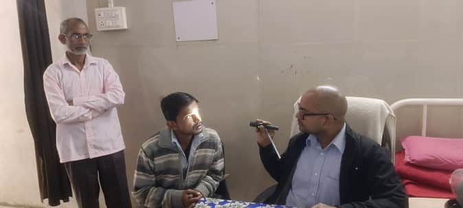 अस्पताल में मरीज के आंख की जांच करते चिकित्सक-संवाद